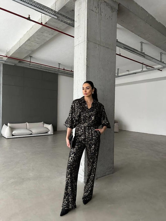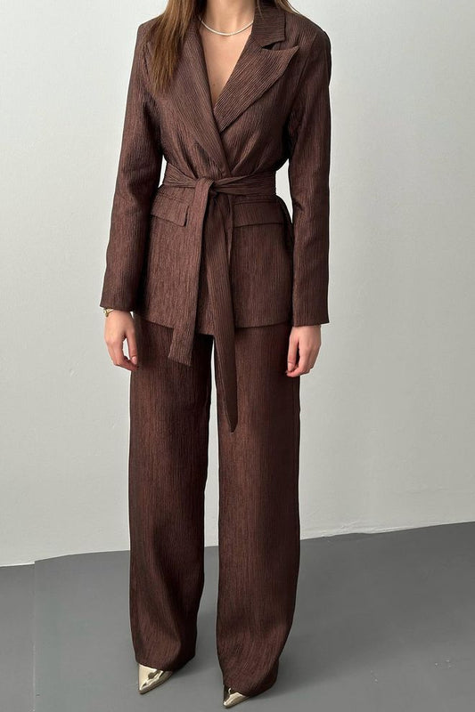Jaqueta e Calça Com Cinto De Cintura Terno Brilhante