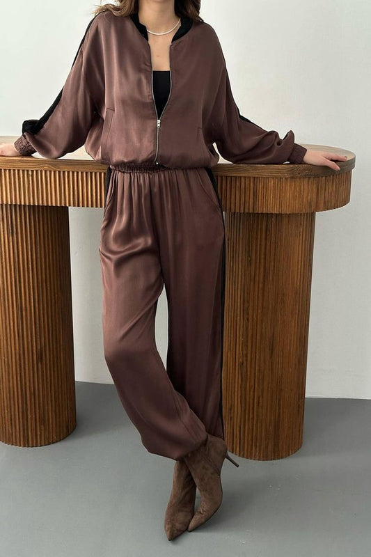 Fato De Cetim Bege