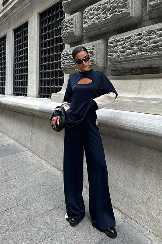 Fato de calças em malha