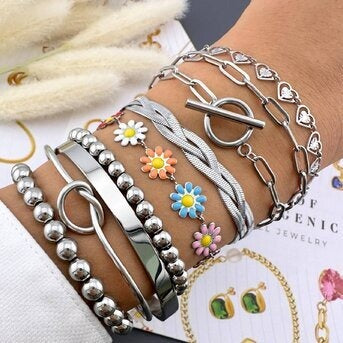 Pulseira "Coraçõezinhos", Aço inoxidável