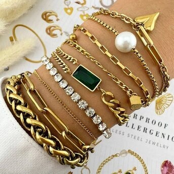 • Pulseira Ténis, Latão banhado a ouro 18K