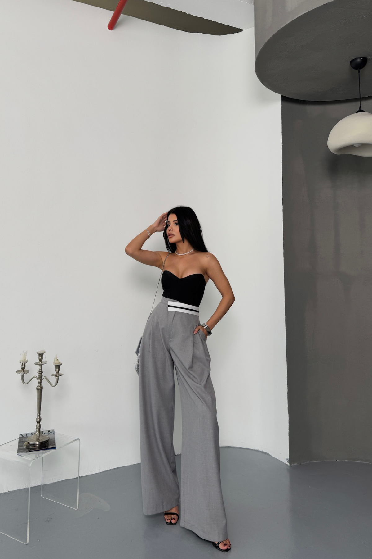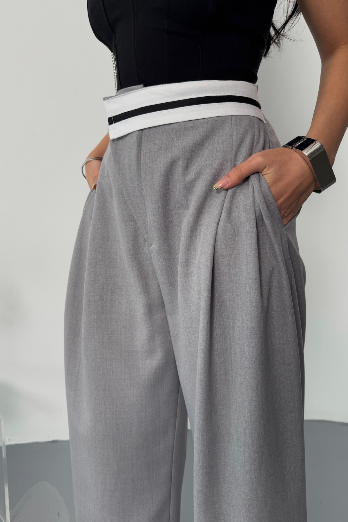 Este par de calças apresenta uma cintura com detalhe em riscas, adicionando um toque de estilo e elegância ao seu guarda-roupa. Feitas com materiais de alta qualidade, essas calças são confortáveis e duráveis para uso diário.