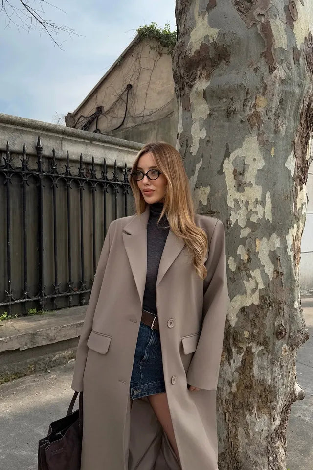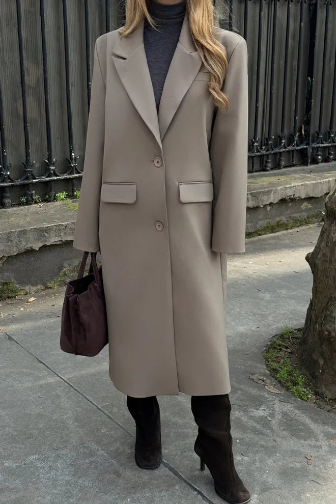 Este casaco com pormenor de bolso com botão na frente é perfeito para manter-se quente e elegante. O tecido em pedra acrescenta um toque de sofisticação ao look. O bolso com botão na frente oferece fácil acesso e segurança para seus objetos pessoais. Uma opção essencial para qualquer guarda-roupa.