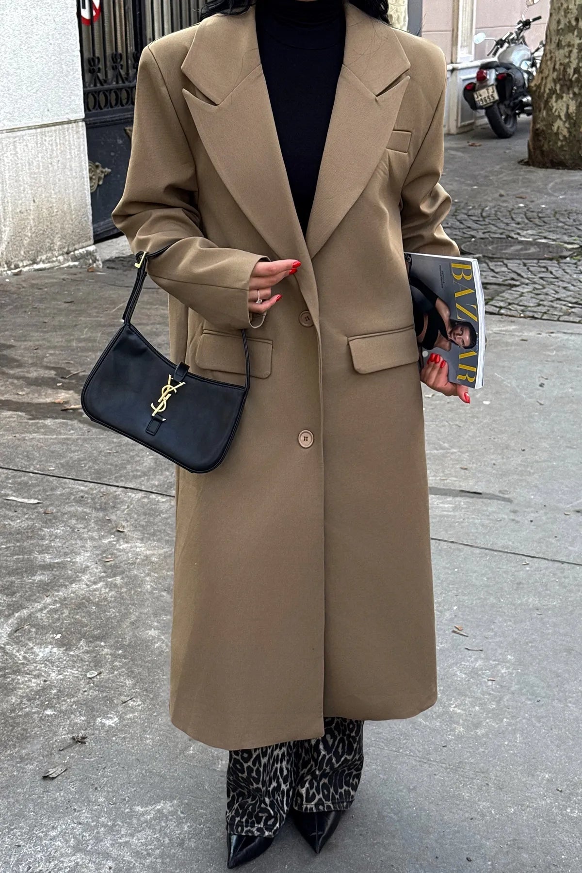 Este casaco apresenta um pormenor de bolso na frente com botões, adicionando um toque elegante ao design. Feito em vison, este casaco é macio, confortável e perfeito para os dias mais frios. Adicione um toque de luxo ao seu guarda-roupa com este casaco deslumbrante.