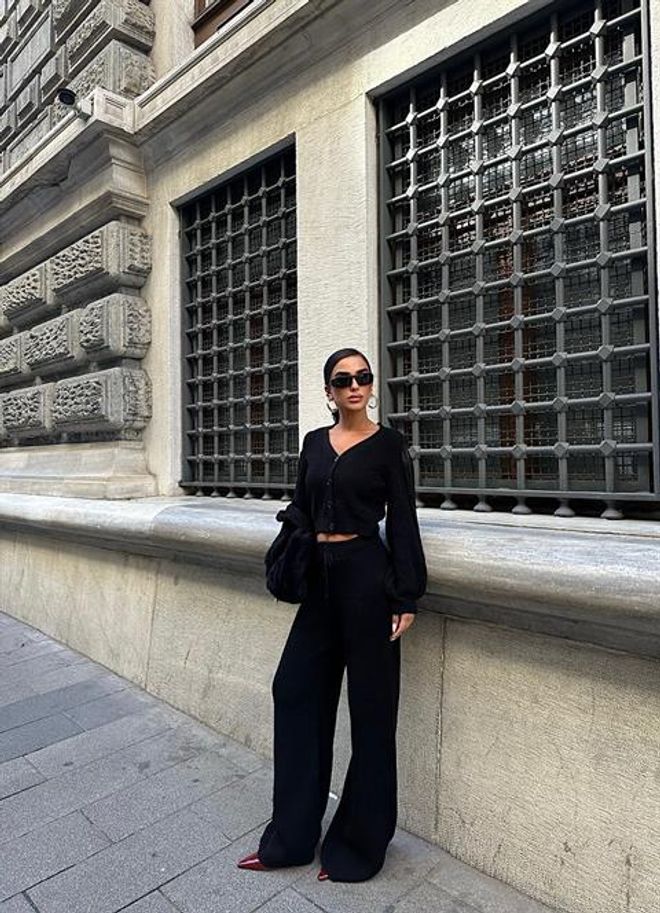 Fato de calças em malha