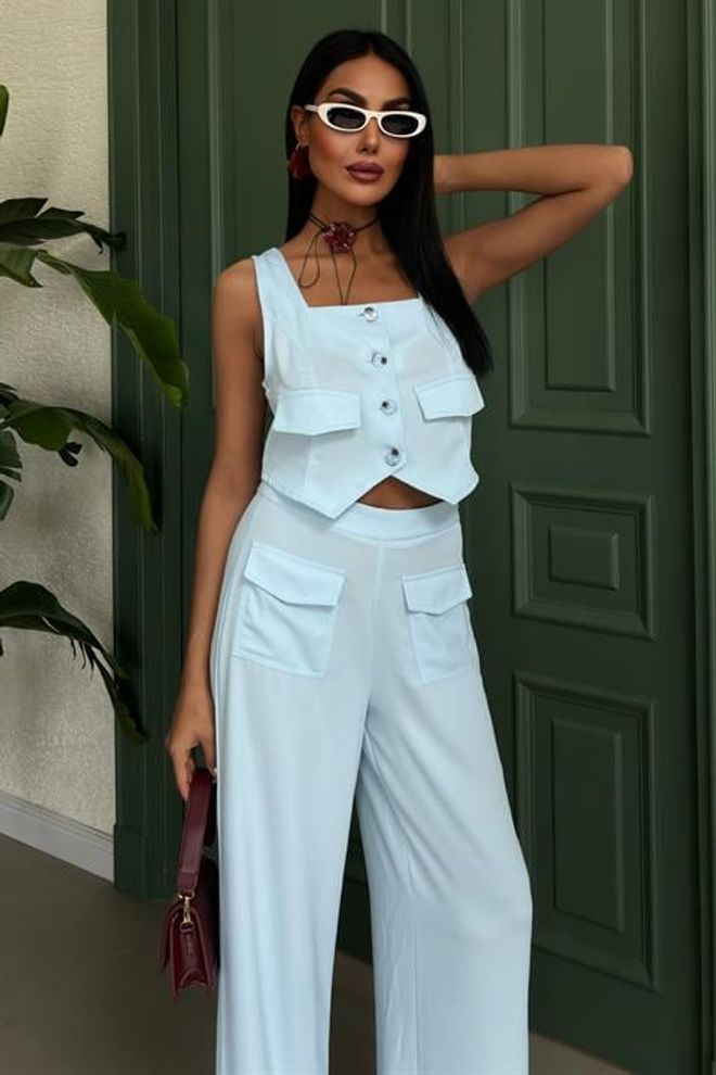 Tenha um visual sofisticado e moderno com o nosso Fato de gola quadrada com bolsos pormenorizados. Feito com tecido de alta qualidade, esse fato possui uma gola quadrada elegante e bolsos detalhados que oferecem praticidade e estilo. Ideal para qualquer ocasião, esse fato será uma peça-chave no seu guarda-roupa.