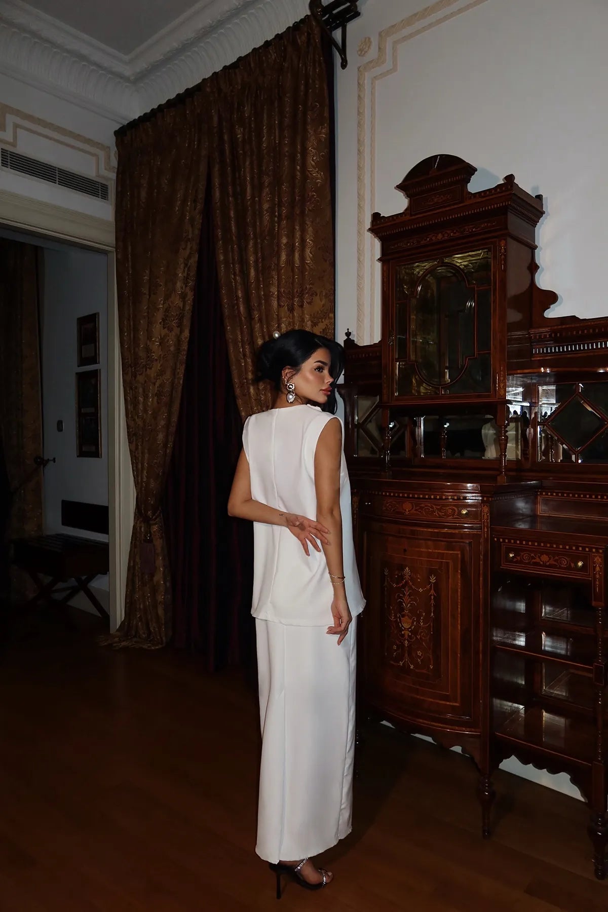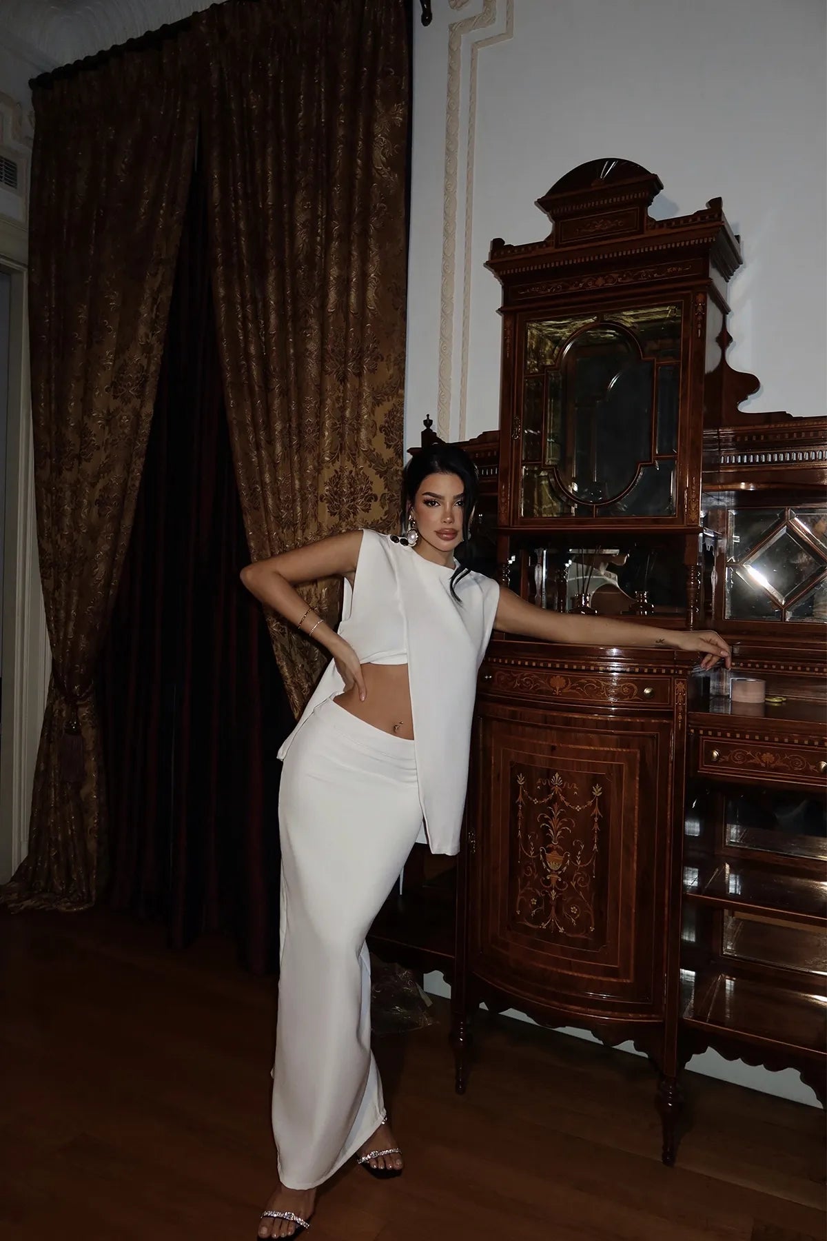 Este fato de saia branco é a escolha perfeita para adicionar elegância e sofisticação ao seu guarda-roupa. Com tecido de alta qualidade e corte impecável, ele proporciona um visual impecável e profissional. Ideal para eventos formais ou ocasiões especiais, este fato de saia irá garantir que você se destaque com estilo e confiança.