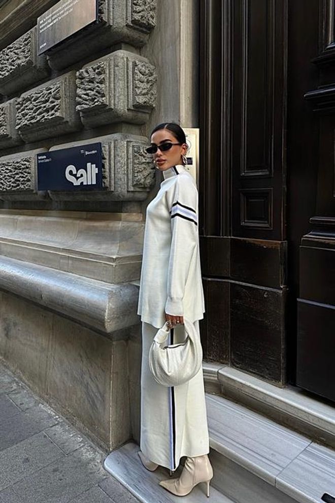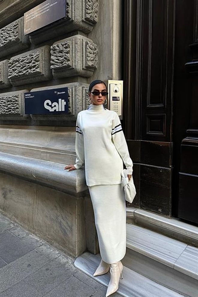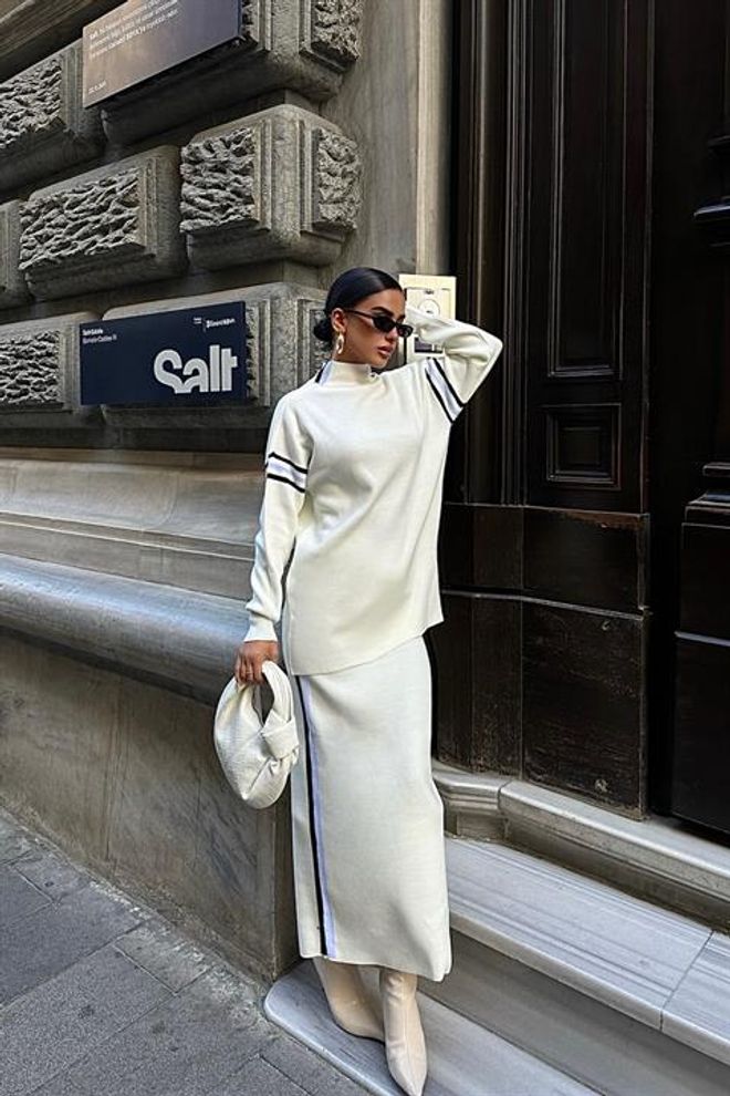 Este fatoàs riscas com saia é perfeito para lazer. Feito com material durável e confortável, proporciona liberdade de movimento e estilo. Sinta-se confiante e elegante em qualquer atividade física com este fato desportivo versátil.